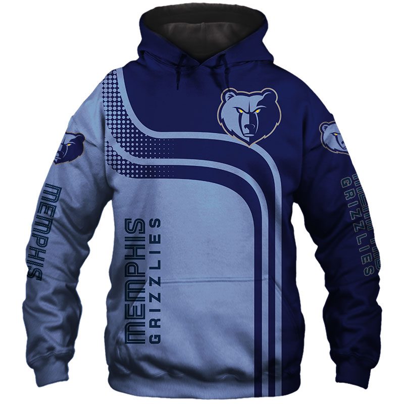 NBA Memphis Grizzlies Blue Curves Pullover Hoodie Product Features Along with its Memphis Grizzlies graphics, this cozy pullover hoodie features super-soft midweight material. Material: 95% polyester + 5% spandex. The fabric is durable and resistant to wrinkles, shrinking and mildew. Hood with drawstrings. Long sleeve. Front pouch pocket. Midweight hoodie suitable for moderate temperatures. Features...