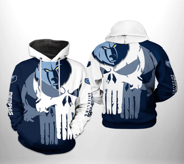 NBA Memphis Grizzlies Blue White Punisher Skull Pullover Hoodie V3 Product Features Along with its Memphis Grizzlies graphics, this cozy pullover hoodie features super-soft midweight material. Material: 95% polyester + 5% spandex. The fabric is durable and resistant to wrinkles, shrinking and mildew. Hood with drawstrings. Long sleeve. Front pouch pocket. Midweight hoodie suitable for...