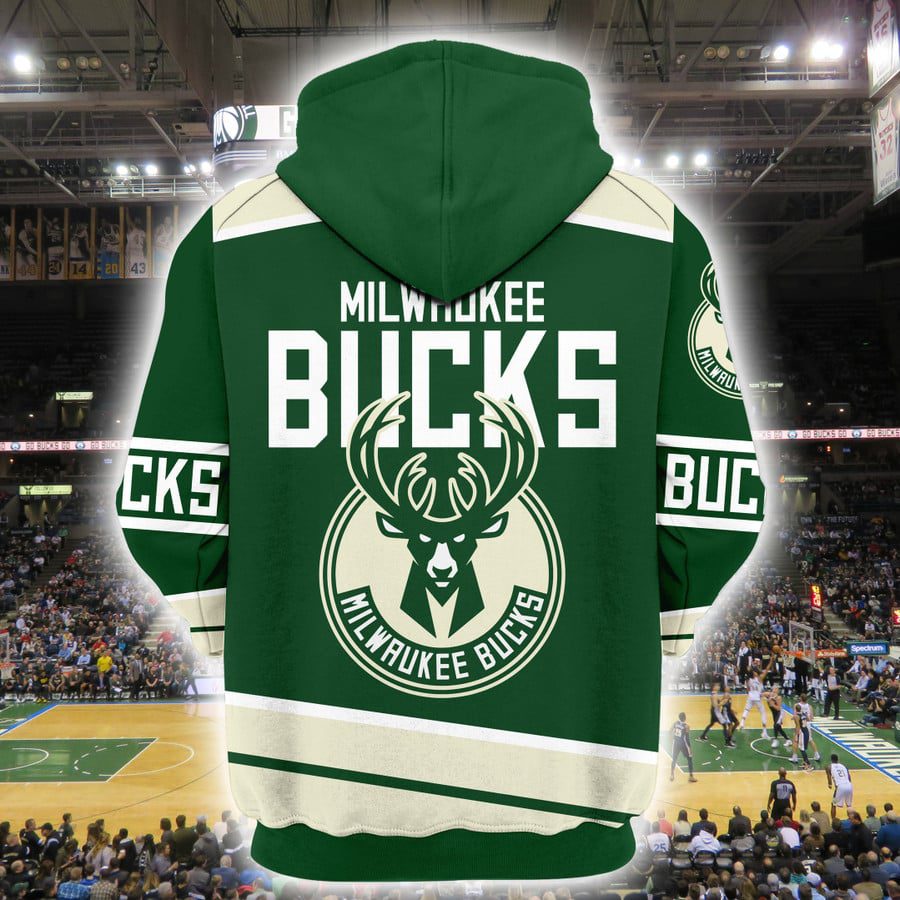 NBA Milwaukee Bucks Green Cream Pullover Hoodie V2 Product Features Along with its Milwaukee Bucks graphics, this cozy pullover hoodie features super-soft midweight material. Material: 95% polyester + 5% spandex. The fabric is durable and resistant to wrinkles, shrinking and mildew. Hood with drawstrings. Long sleeve. Front pouch pocket. Midweight hoodie suitable for moderate temperatures....