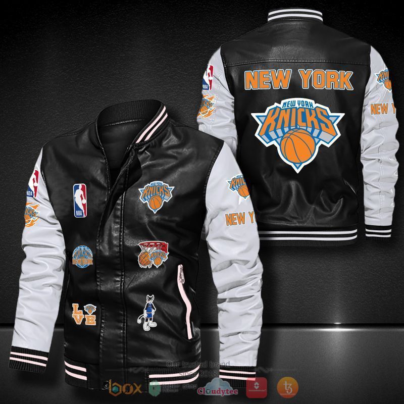 NBA New York Knicks Black White Logo Team Leather Bomber Jacket