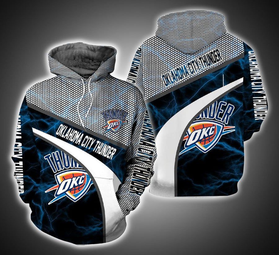 NBA Oklahoma City Thunder Black Armor Pullover Hoodie Product Features Along with its Oklahoma City Thunder graphics, this cozy pullover hoodie features super-soft midweight material. Material: 95% polyester + 5% spandex. The fabric is durable and resistant to wrinkles, shrinking and mildew. Hood with drawstrings. Long sleeve. Front pouch pocket. Midweight hoodie suitable for moderate...