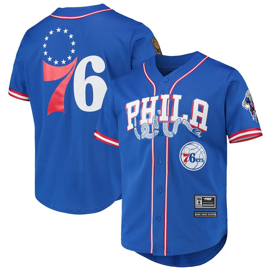 NBA Philadelphia 76ers Blue Baseball Jersey Product Features This Philadelphia 76ers Baseball Jersey is not only sturdy and durable for long hours of exercising, but also breathable and moisture-wicking to keep you snug all day. Breathable fabric: This Baseball Jersey is made of woven fabric, with moisture-wicking features and a comfortable feel to the skin.?...