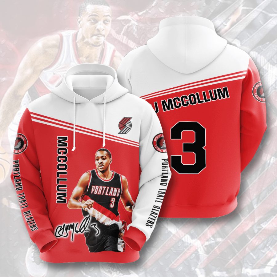 NBA Portland Trail Blazers CJ McCollum Pullover Hoodie Product Features Along with its Portland Trail Blazers graphics, this cozy pullover hoodie features super-soft midweight material. Material: 95% polyester + 5% spandex. The fabric is durable and resistant to wrinkles, shrinking and mildew. Hood with drawstrings. Long sleeve. Front pouch pocket. Midweight hoodie suitable for moderate...