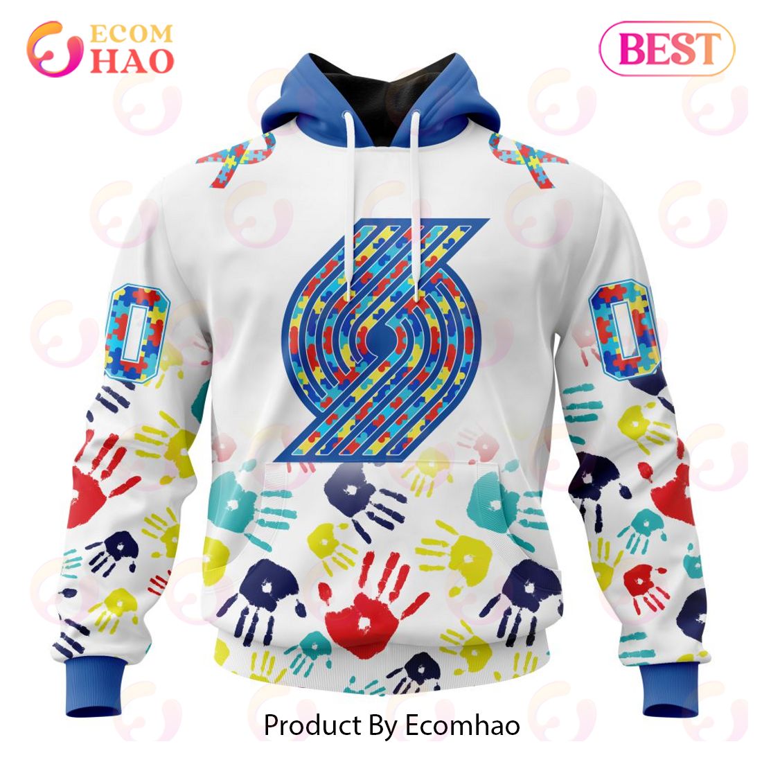 NBA Portland Trail Blazers Custom Name Number Autism Awareness Pullover Hoodie Product Features Along with its Portland Trail Blazers graphics, this cozy pullover hoodie features super-soft midweight material. Material: 95% polyester + 5% spandex. The fabric is durable and resistant to wrinkles, shrinking and mildew. Hood with drawstrings. Long sleeve. Front pouch pocket. Midweight hoodie...