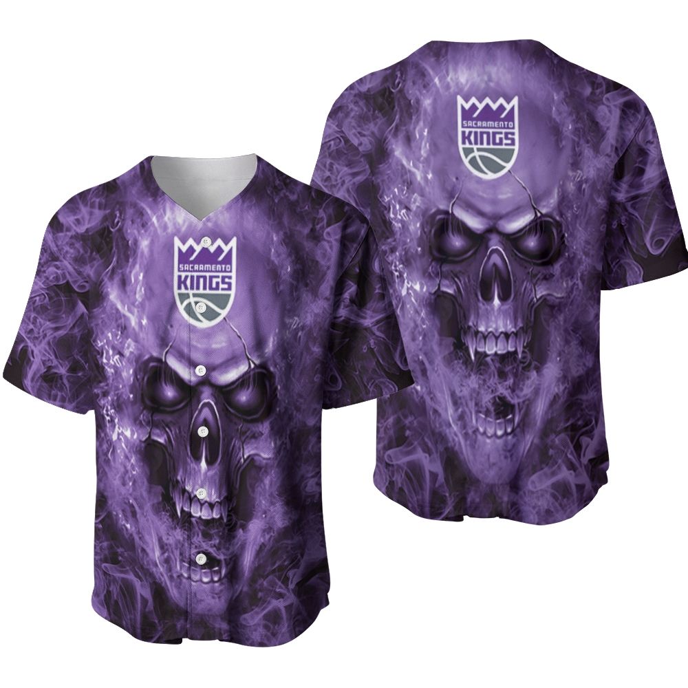 NBA Sacramento Kings Purple Smoke Skull Baseball Jersey
