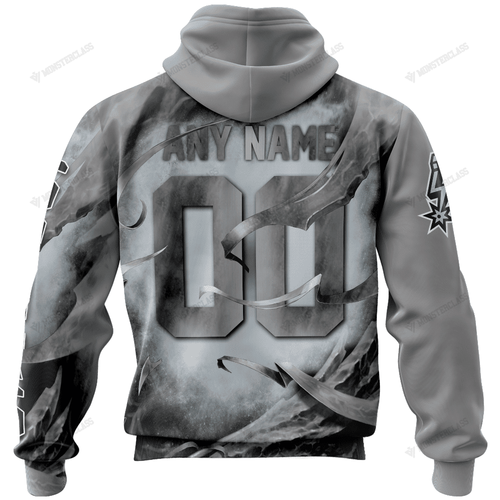 NBA San Antonio Spurs Custom Name Number Skull Pullover Hoodie Product Features Along with its San Antonio Spurs graphics, this cozy pullover hoodie features super-soft midweight material. Material: 95% polyester + 5% spandex. The fabric is durable and resistant to wrinkles, shrinking and mildew. Hood with drawstrings. Long sleeve. Front pouch pocket. Midweight hoodie suitable...