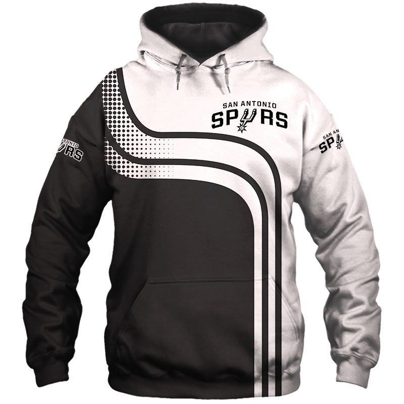 NBA San Antonio Spurs White Black Curvers Pullover Hoodie Product Features Along with its San Antonio Spurs graphics, this cozy pullover hoodie features super-soft midweight material. Material: 95% polyester + 5% spandex. The fabric is durable and resistant to wrinkles, shrinking and mildew. Hood with drawstrings. Long sleeve. Front pouch pocket. Midweight hoodie suitable for...