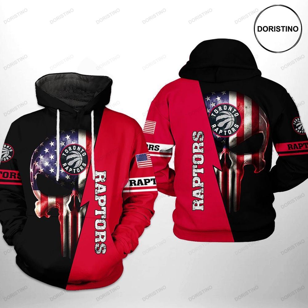 NBA Toronto Raptors Black Red US Flag Punish Skull Pullover Hoodie Product Features Along with its Toronto Raptors graphics, this cozy pullover hoodie features super-soft midweight material. Material: 95% polyester + 5% spandex. The fabric is durable and resistant to wrinkles, shrinking and mildew. Hood with drawstrings. Long sleeve. Front pouch pocket. Midweight hoodie suitable...