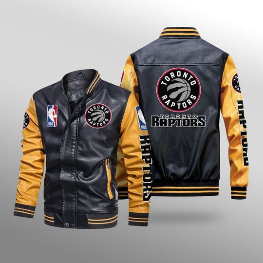 NBA Toronto Raptors Black Yellow Leather Bomber Jacket