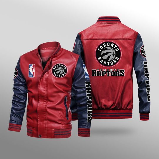 NBA Toronto Raptors Red Navy Leather Bomber Jacket