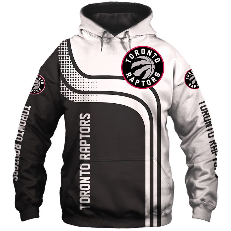 NBA Toronto Raptors White Black Curvers Pullover Hoodie Product Features Along with its Toronto Raptors graphics, this cozy pullover hoodie features super-soft midweight material. Material: 95% polyester + 5% spandex. The fabric is durable and resistant to wrinkles, shrinking and mildew. Hood with drawstrings. Long sleeve. Front pouch pocket. Midweight hoodie suitable for moderate temperatures....