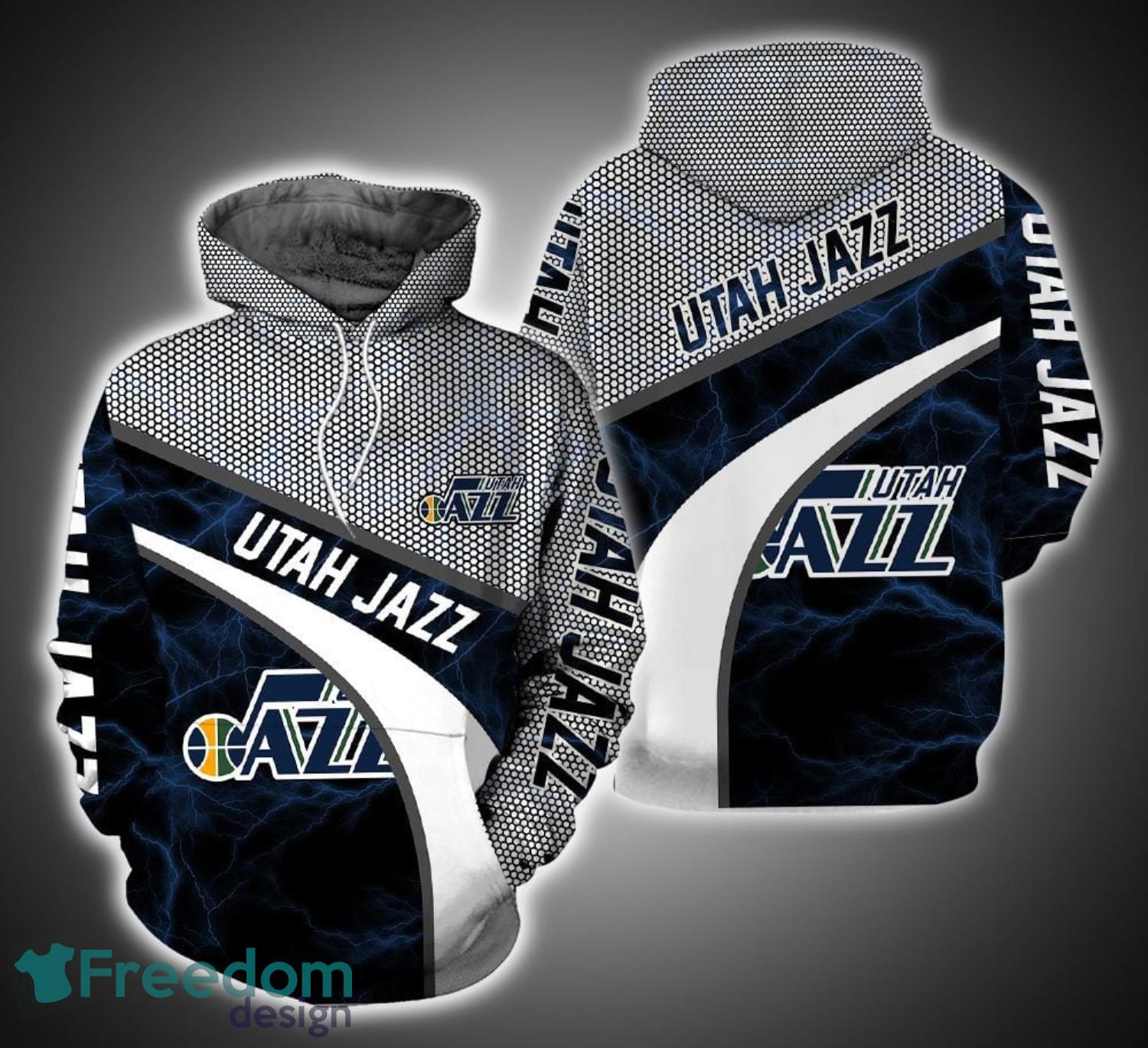 NBA Utah Jazz Armor Pullover Hoodie Product Features Along with its Utah Jazz graphics, this cozy pullover hoodie features super-soft midweight material. Material: 95% polyester + 5% spandex. The fabric is durable and resistant to wrinkles, shrinking and mildew. Hood with drawstrings. Long sleeve. Front pouch pocket. Midweight hoodie suitable for moderate temperatures. Features a...