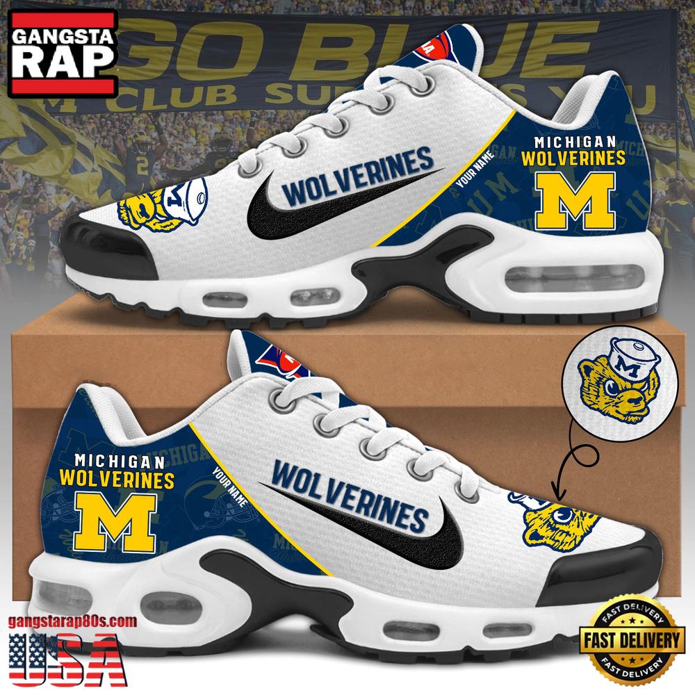 NCAA Custom Name Michigan Wolverines Football Mascot Symbol Air Max Plus Shoes Running Sneakers