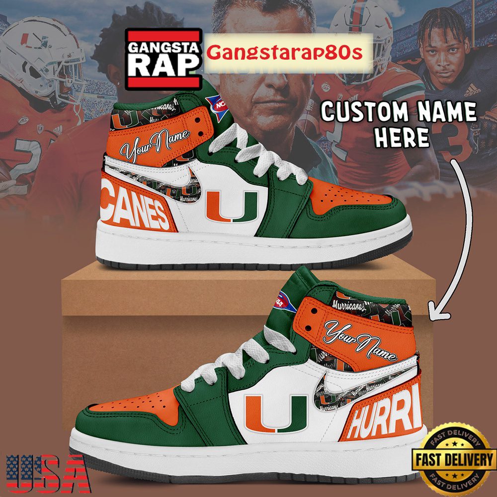 NCAA Miami Hurricanes Custom Name Air Jordan 1 Shoes Running Sneakers