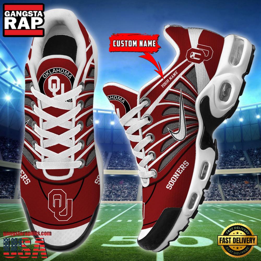 NCAA Oklahoma Sooners Sport Football Logo Custom Name Air Max Plus Shoes Running SneakersNCAA Oklahoma Sooners Sport Football Logo Custom Name Air Max Plus Shoes Running Sneakers