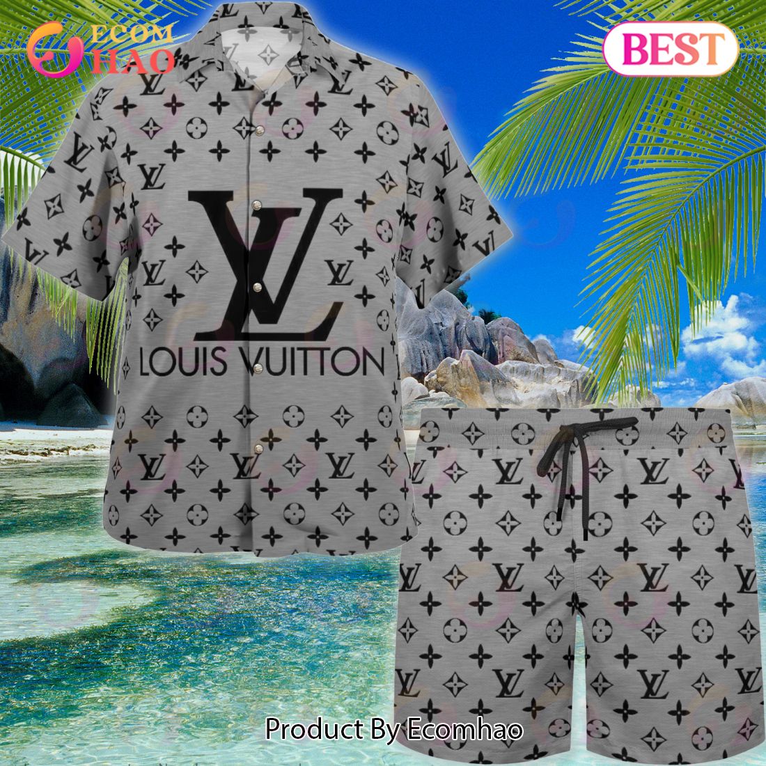 NEW Louis Vuitton Grey Color Hawaiian Shirt & Beach Shorts This NEW Louis Vuitton Grey Color Hawaiian Shirt & Beach Shorts are the perfect summer outfit for the sunny season! Featuring a classic Hawaiian-inspired print in a beautiful grey color, the lightweight fabric of the shirt and shorts allows for maximum breathability and comfort. The...