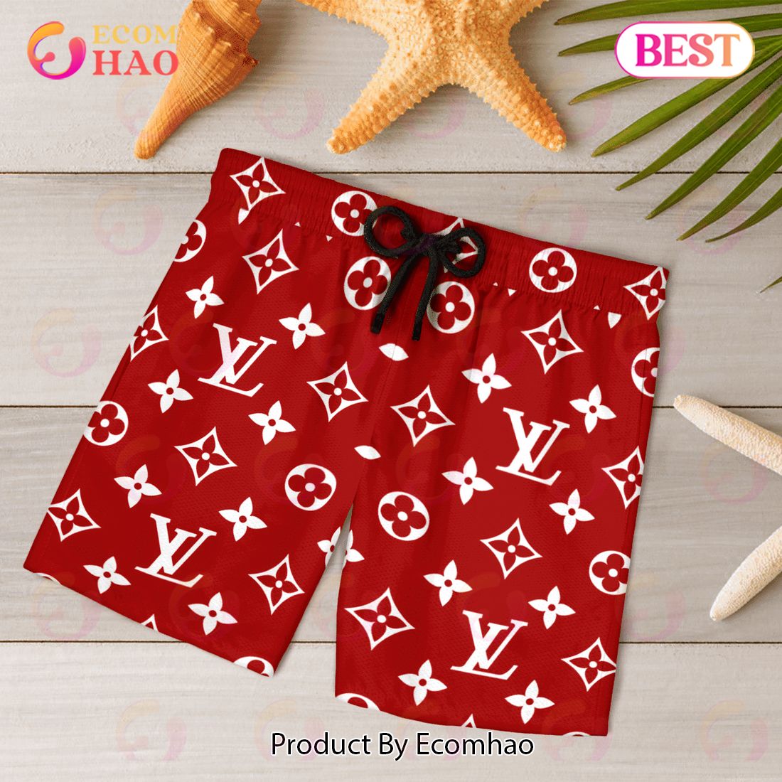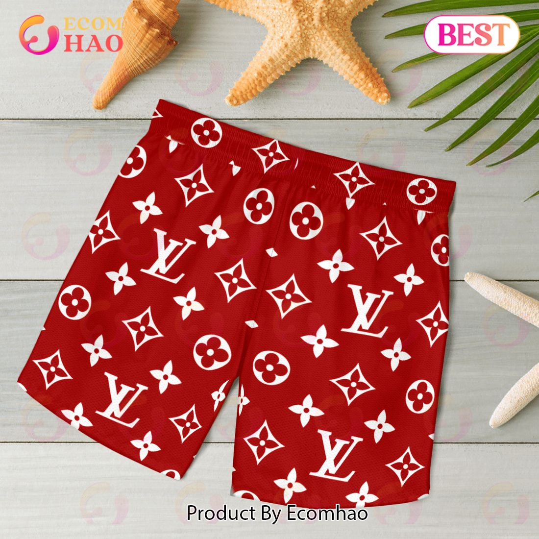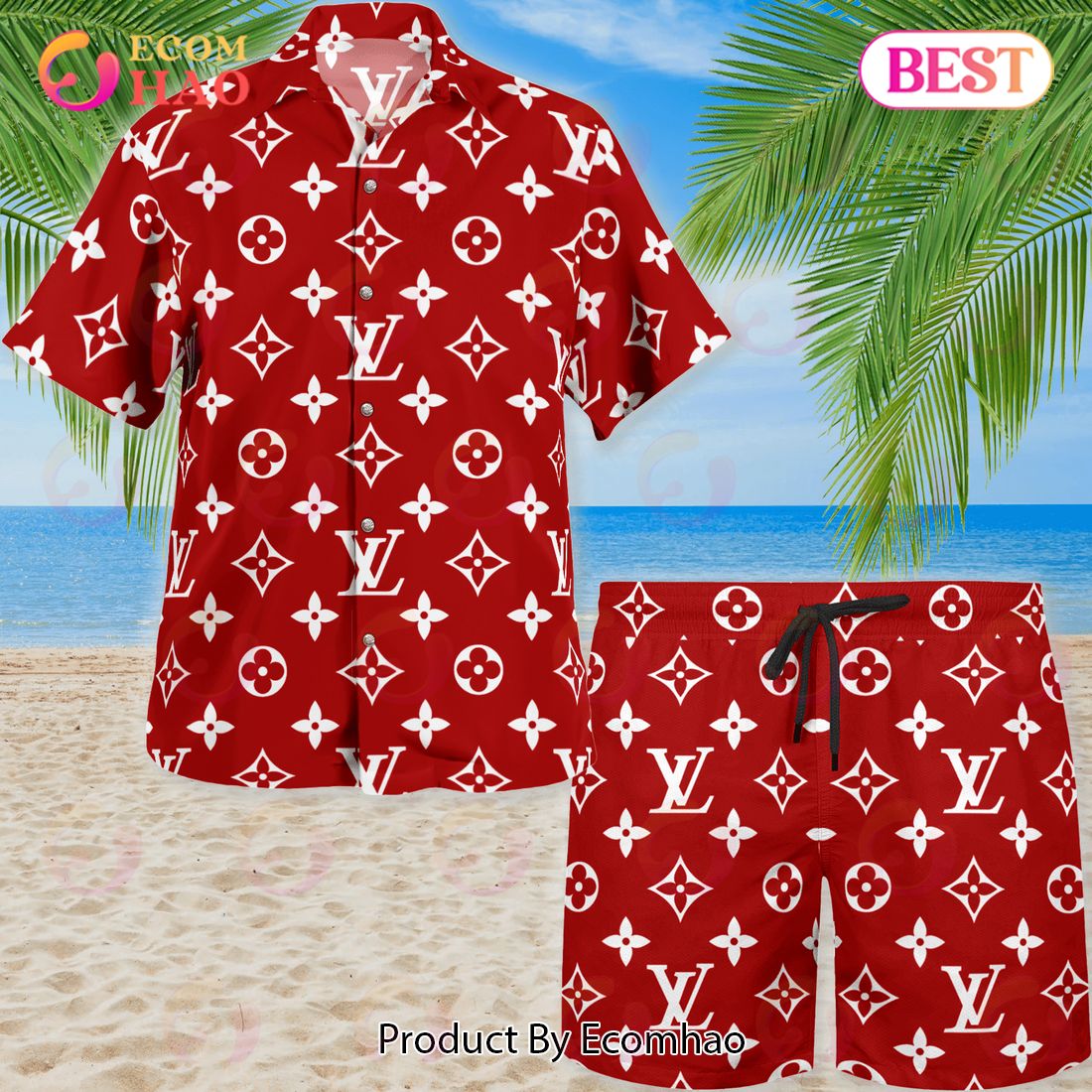 NEW Louis Vuitton Red Color Hawaiian Shirt & Beach Shorts Information: