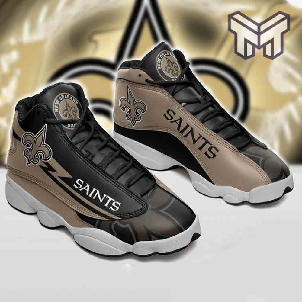 The New Orleans Saints NFL Big Logo Football Team White Black J13 Shoes Type01 are designed with the utmost attention to detail. The shoes feature the iconic Saints logo prominently displayed on the sides, showcasing your team pride for all to see. The combination of white and black colors adds a sleek and modern touch, making these shoes not only a symbol of your loyalty but also a fashionable choice.