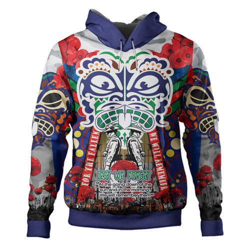 New Zealand Warriors Anzac Watercolor Custom Hoodie – Remembrance Anzac Day With Maori Tiki Mask And Poppy Flower