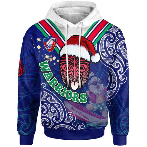 New Zealand Warriors Christmas Hoodie – Custom New Zealand Warriors Maori Culture Christmas Vibes with Santa Surfing Hoodie