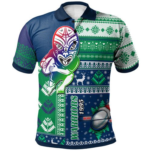 New Zealand Warriors Polo Shirt – Custom Christmas Snowflakes New Zealand Warriors Mascot Polo Shirt