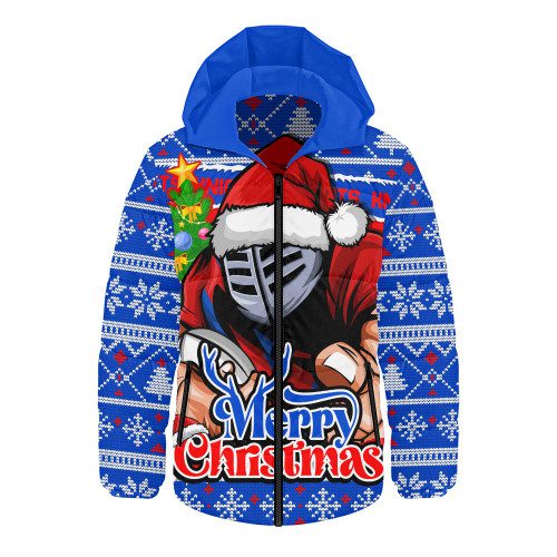 Newcastle Knights Hooded Padded Jacket Merry Christmas Game Day Knit Style Team Edition