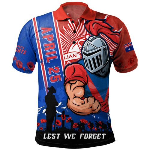 Newcastle Knights Polo Shirt Anzac Day Lest We Forget Strong Fighting Spirit