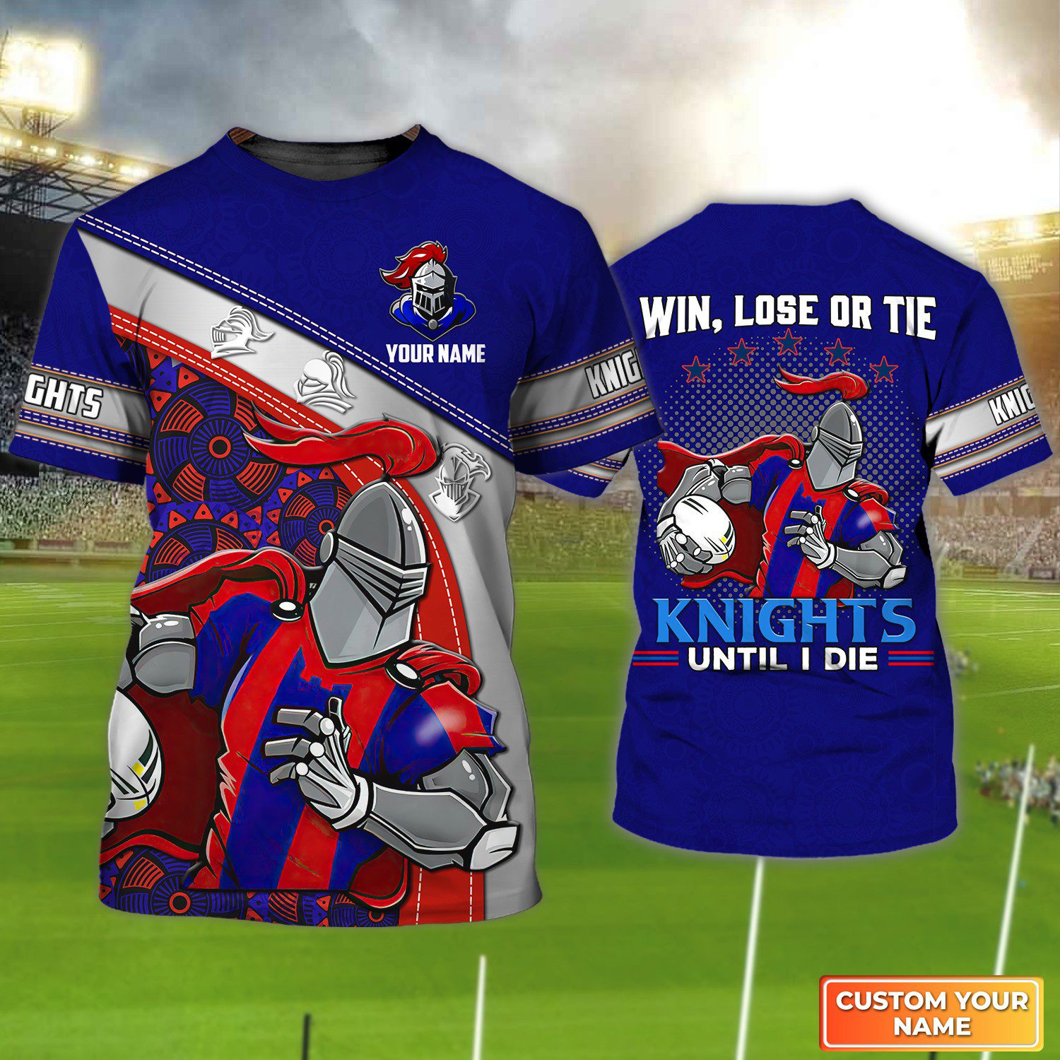 Newcastle Knights T-Shirt Win, Lose Or Tie Knights Until I Die Personalized Name 3D Tshirt Gift For Nrl Fan Tad 02