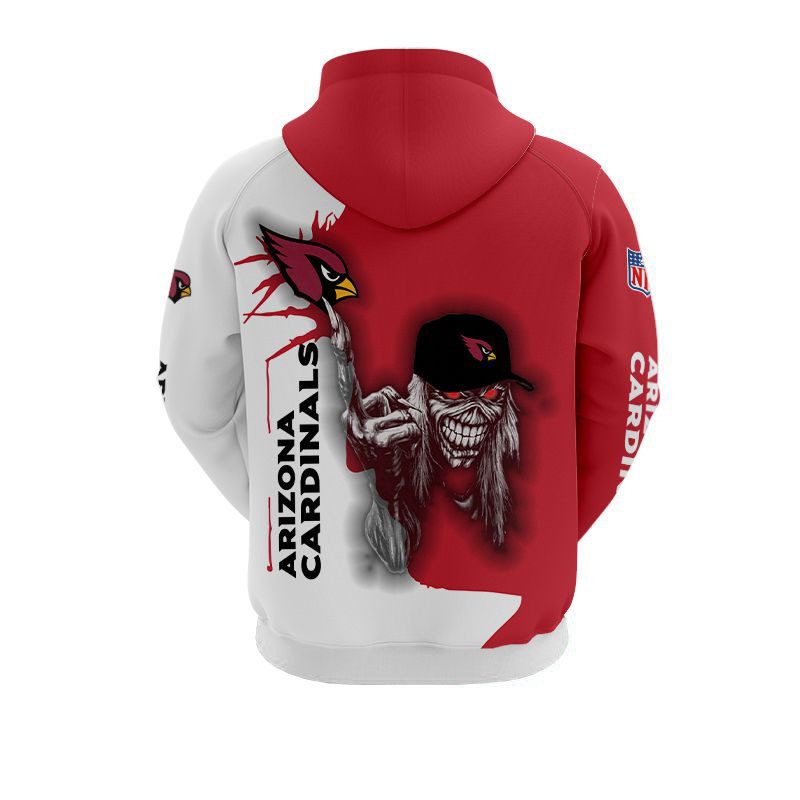 NFL Arizona Cardinals Halloween Iron Maiden Pullover Hoodie Product Features Along with its Arizona Cardinals graphics, this cozy pullover hoodie features super-soft midweight material. Material: 95% polyester + 5% spandex. The fabric is durable and resistant to wrinkles, shrinking and mildew. Hood with drawstrings. Long sleeve. Front pouch pocket. Midweight hoodie suitable for moderate temperatures....