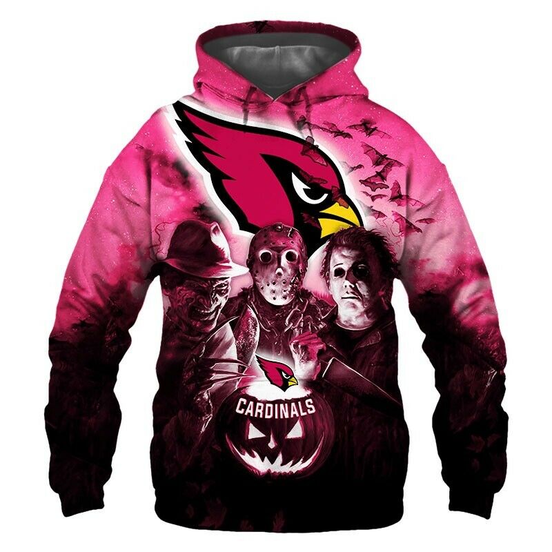 NFL Arizona Cardinals Halloween Night Pullover Hoodie Product Features Along with its Arizona Cardinals graphics, this cozy pullover hoodie features super-soft midweight material. Material: 95% polyester + 5% spandex. The fabric is durable and resistant to wrinkles, shrinking and mildew. Hood with drawstrings. Long sleeve. Front pouch pocket. Midweight hoodie suitable for moderate temperatures. Features...