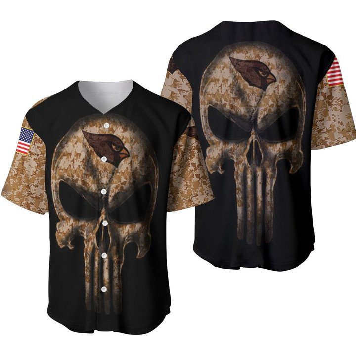 NFL Arizona Cardinals Punisher Skull Camo Baseball Jersey Product Features This Arizona Cardinals Baseball Jersey is not only sturdy and durable for long hours of exercising, but also breathable and moisture-wicking to keep you snug all day. Breathable fabric: This Baseball Jersey is made of woven fabric, with moisture-wicking features and a comfortable feel to...