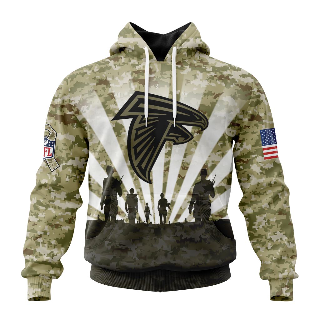 NFL Atlanta Falcons Custom Name Number Honor Veterans And Families Pullover Hoodie