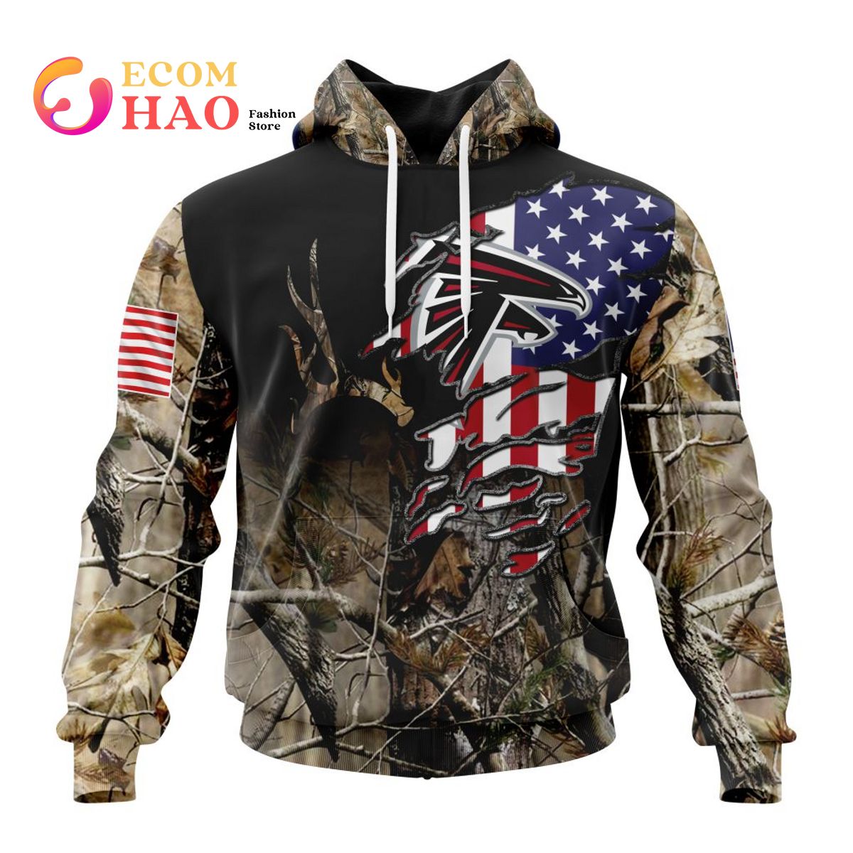 NFL Atlanta Falcons Custom Name Number Special Camo Pullover Hoodie Product Features Along with its Atlanta Falcons graphics, this cozy pullover hoodie features super-soft midweight material. Material: 95% polyester + 5% spandex. The fabric is durable and resistant to wrinkles, shrinking and mildew. Hood with drawstrings. Long sleeve. Front pouch pocket. Midweight hoodie suitable for...