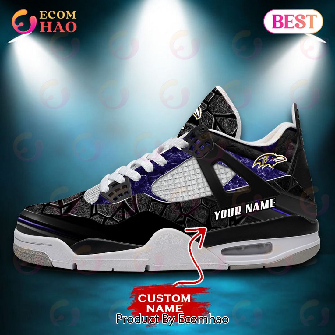 NFL Baltimore Ravens Air Jordan 4 Sneaker Custom Name The NFL Baltimore Ravens Air Jordan 4 Sneaker Custom Name is an ideal choice for die-hard Ravens fans who want to show their team pride as they step out. The stylish shoe is designed to provide superior performance, comfort and style. The mid-top silhouette with a...