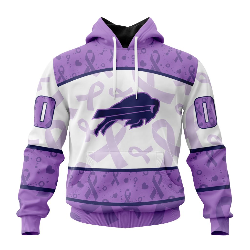 NFL Buffalo Bills Custom Name Number Fight Cancer Pullover Hoodie Product Features Along with its Buffalo Bills graphics, this cozy pullover hoodie features super-soft midweight material. Material: 95% polyester + 5% spandex. The fabric is durable and resistant to wrinkles, shrinking and mildew. Hood with drawstrings. Long sleeve. Front pouch pocket. Midweight hoodie suitable for...