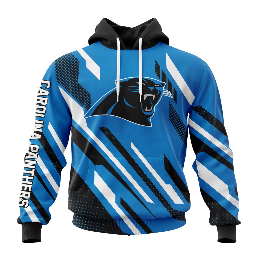 NFL Carolina Panthers Custom Name Number MotoCross Concept Unisex Pullover Hoodie Product Features Along with its Carolina Panthers graphics, this cozy pullover hoodie features super-soft midweight material. Material: 95% polyester + 5% spandex. The fabric is durable and resistant to wrinkles, shrinking and mildew. Hood with drawstrings. Long sleeve. Front pouch pocket. Midweight hoodie suitable...