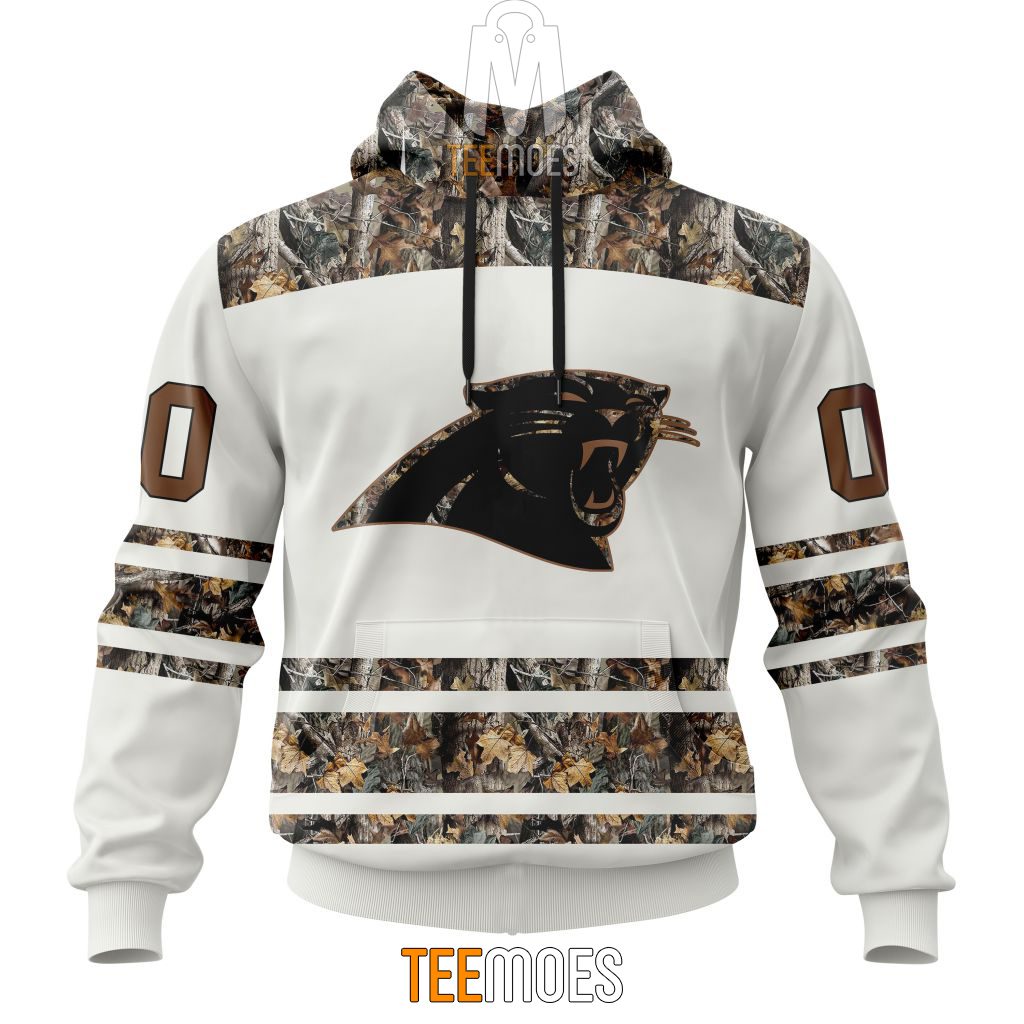 NFL Carolina Panthers Custom Name Number White Camo Hunting Pullover Hoodie Product Features