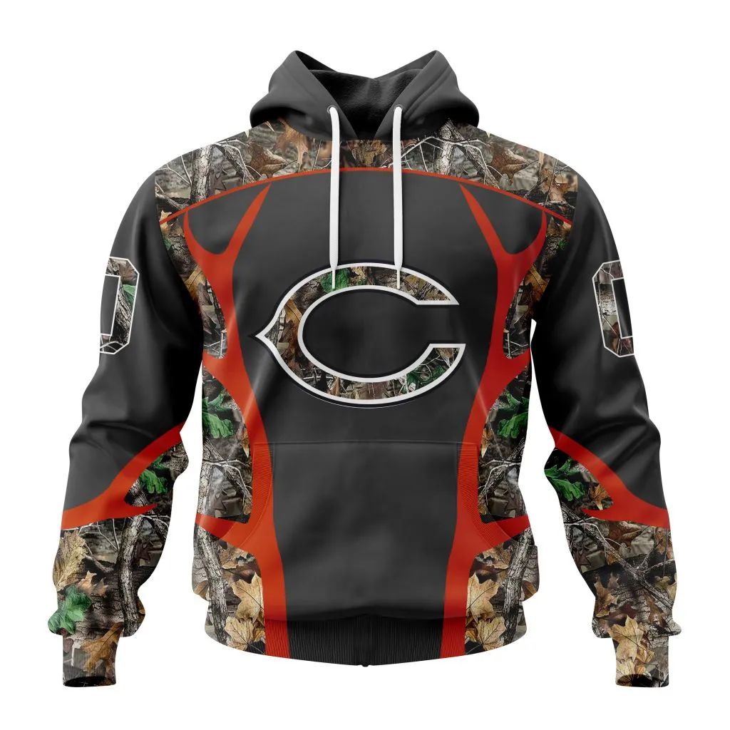 NFL Chicago Bears Custom Name Number Camo Hunting Design Pullover Hoodie Product Features Along with its Chicago Bears graphics, this cozy pullover hoodie features super-soft midweight material. Material: 95% polyester + 5% spandex. The fabric is durable and resistant to wrinkles, shrinking and mildew. Hood with drawstrings. Long sleeve. Front pouch pocket. Midweight hoodie suitable...