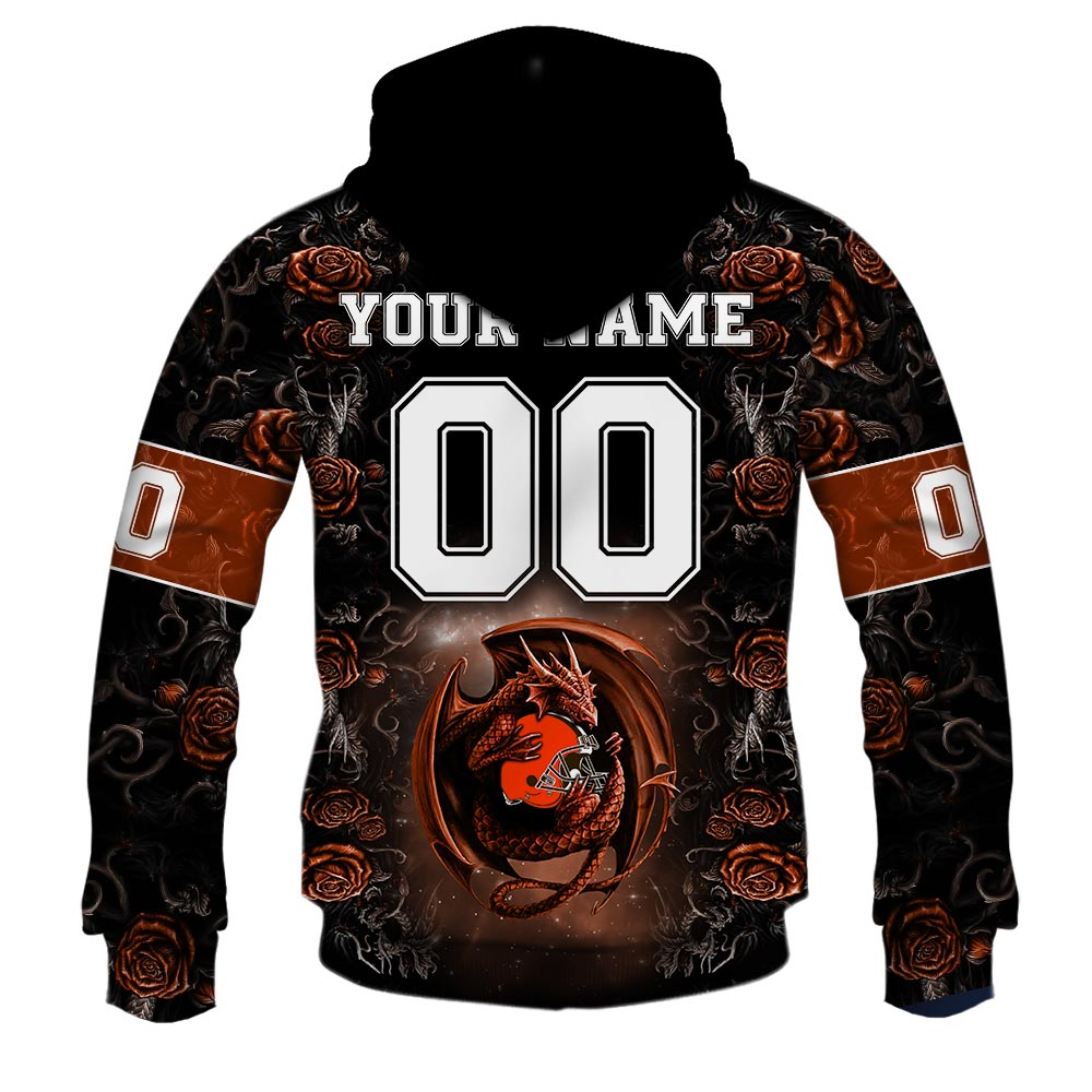 NFL Cleveland Browns Custom Name Number Rose Dragon Pullover Hoodie
