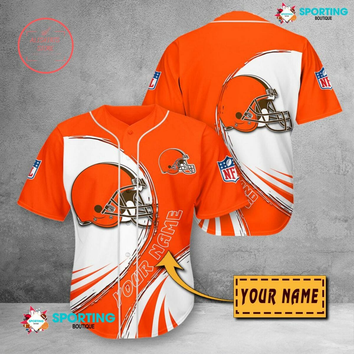 NFL Cleveland Browns Custom Name Orange White Baseball Jersey Product Features This Cleveland Browns Baseball Jersey is not only sturdy and durable for long hours of exercising, but also breathable and moisture-wicking to keep you snug all day. Breathable fabric: This Baseball Jersey is made of woven fabric, with moisture-wicking features and a comfortable feel...