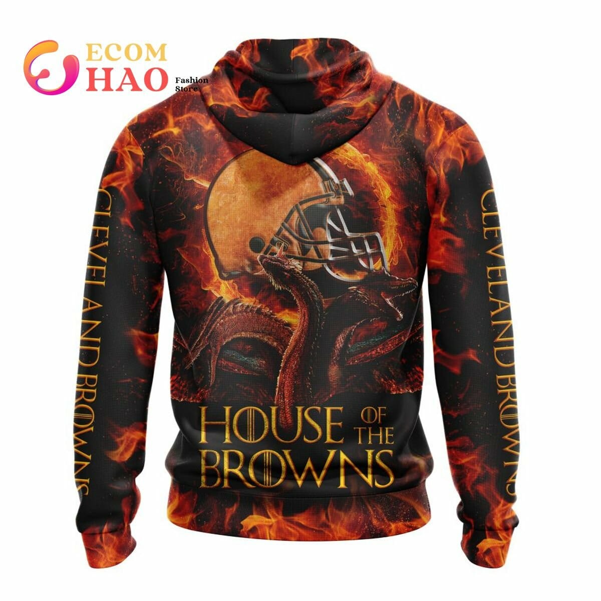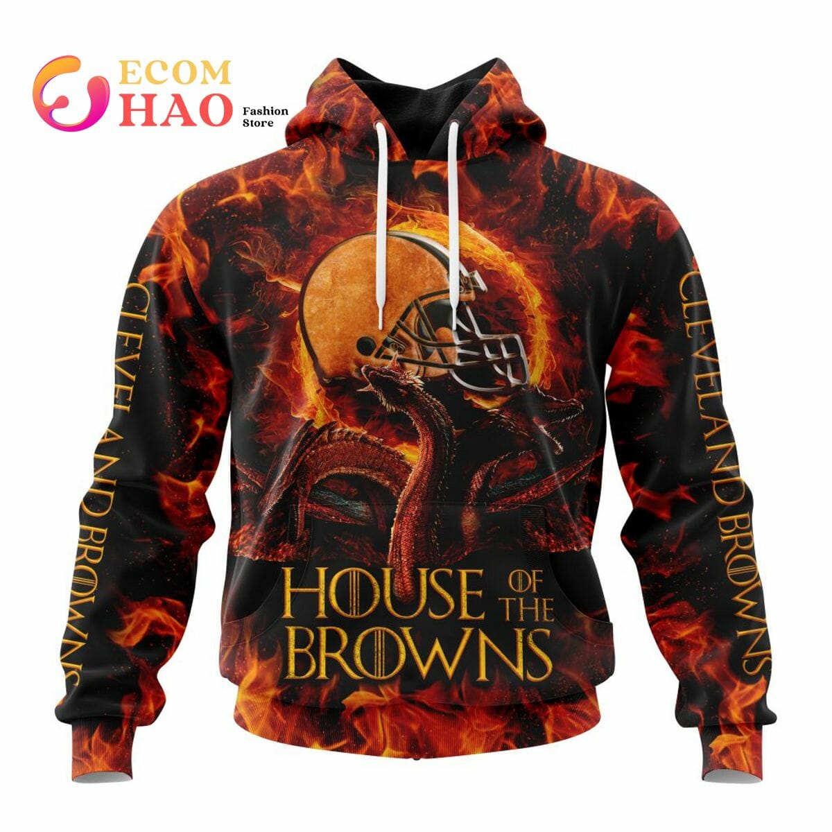 NFL Cleveland Browns Dragon Pullover Hoodie Product Features Along with its Cleveland Browns graphics, this cozy pullover hoodie features super-soft midweight material. Material: 95% polyester + 5% spandex. The fabric is durable and resistant to wrinkles, shrinking and mildew. Hood with drawstrings. Long sleeve. Front pouch pocket. Midweight hoodie suitable for moderate temperatures. Features a...