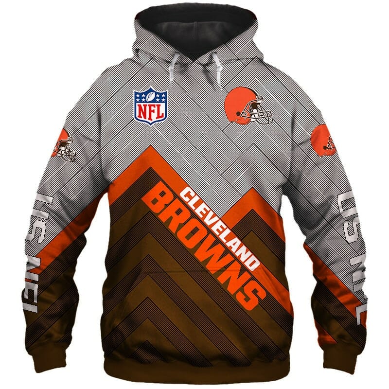 NFL Cleveland Browns Grey Orange Pullover Hoodie Product Features Along with its Cleveland Browns graphics, this cozy pullover hoodie features super-soft midweight material. Material: 95% polyester + 5% spandex. The fabric is durable and resistant to wrinkles, shrinking and mildew. Hood with drawstrings. Long sleeve. Front pouch pocket. Midweight hoodie suitable for moderate temperatures. Features...