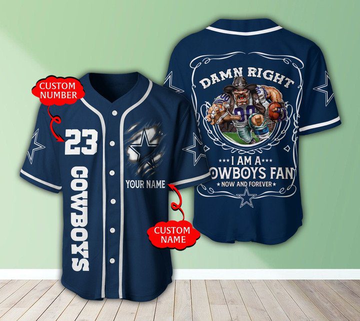 NFL Dallas Cowboys Custom Name Number Damn Right Baseball Jersey Product Features This Dallas Cowboys Baseball Jersey is not only sturdy and durable for long hours of exercising, but also breathable and moisture-wicking to keep you snug all day. Breathable fabric: This Baseball Jersey is made of woven fabric, with moisture-wicking features and a comfortable...