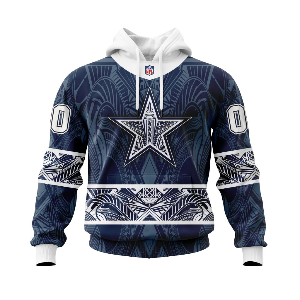 NFL Dallas Cowboys Custom Name Number Native With Samoa Culture Pullover Hoodie Product Features Along with its Dallas Cowboys graphics, this cozy pullover hoodie features super-soft midweight material. Material: 95% polyester + 5% spandex. The fabric is durable and resistant to wrinkles, shrinking and mildew. Hood with drawstrings. Long sleeve. Front pouch pocket. Midweight hoodie...