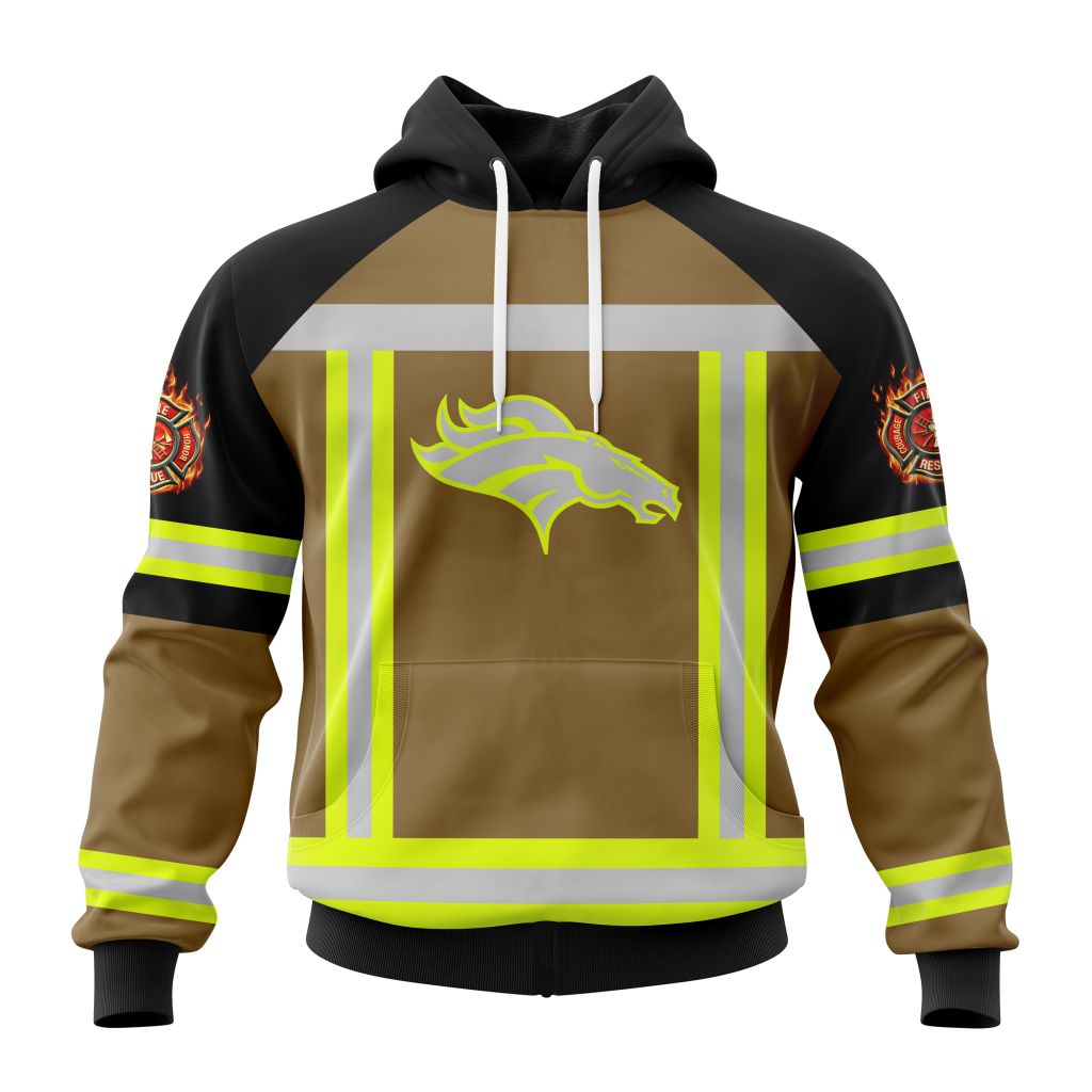 NFL Denver Broncos Custom Name Number Firefighter Uniform Pullover Hoodie