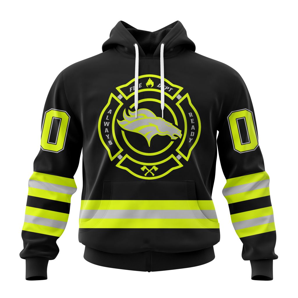 NFL Denver Broncos Custom Name Number Special FireFighter Uniform Pullover Hoodie Product Features Along with its Denver Broncos graphics, this cozy pullover hoodie features super-soft midweight material. Material: 95% polyester + 5% spandex. The fabric is durable and resistant to wrinkles, shrinking and mildew. Hood with drawstrings. Long sleeve. Front pouch pocket. Midweight hoodie suitable...