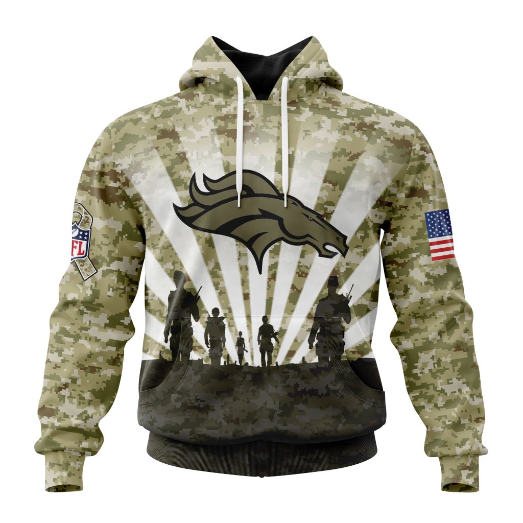 NFL Denver Broncos Custom Name Number Veterans And Families Pullover Hoodie
