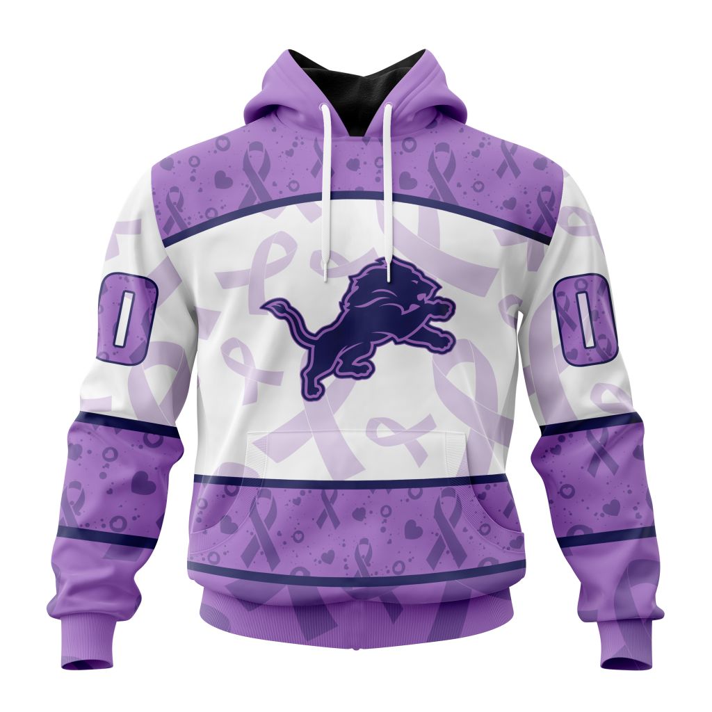 NFL Detroit Lions Custom Name Number Fight Cancer Pullover Hoodie Product Features Along with its Detroit Lions graphics, this cozy pullover hoodie features super-soft midweight material. Material: 95% polyester + 5% spandex. The fabric is durable and resistant to wrinkles, shrinking and mildew. Hood with drawstrings. Long sleeve. Front pouch pocket. Midweight hoodie suitable for...