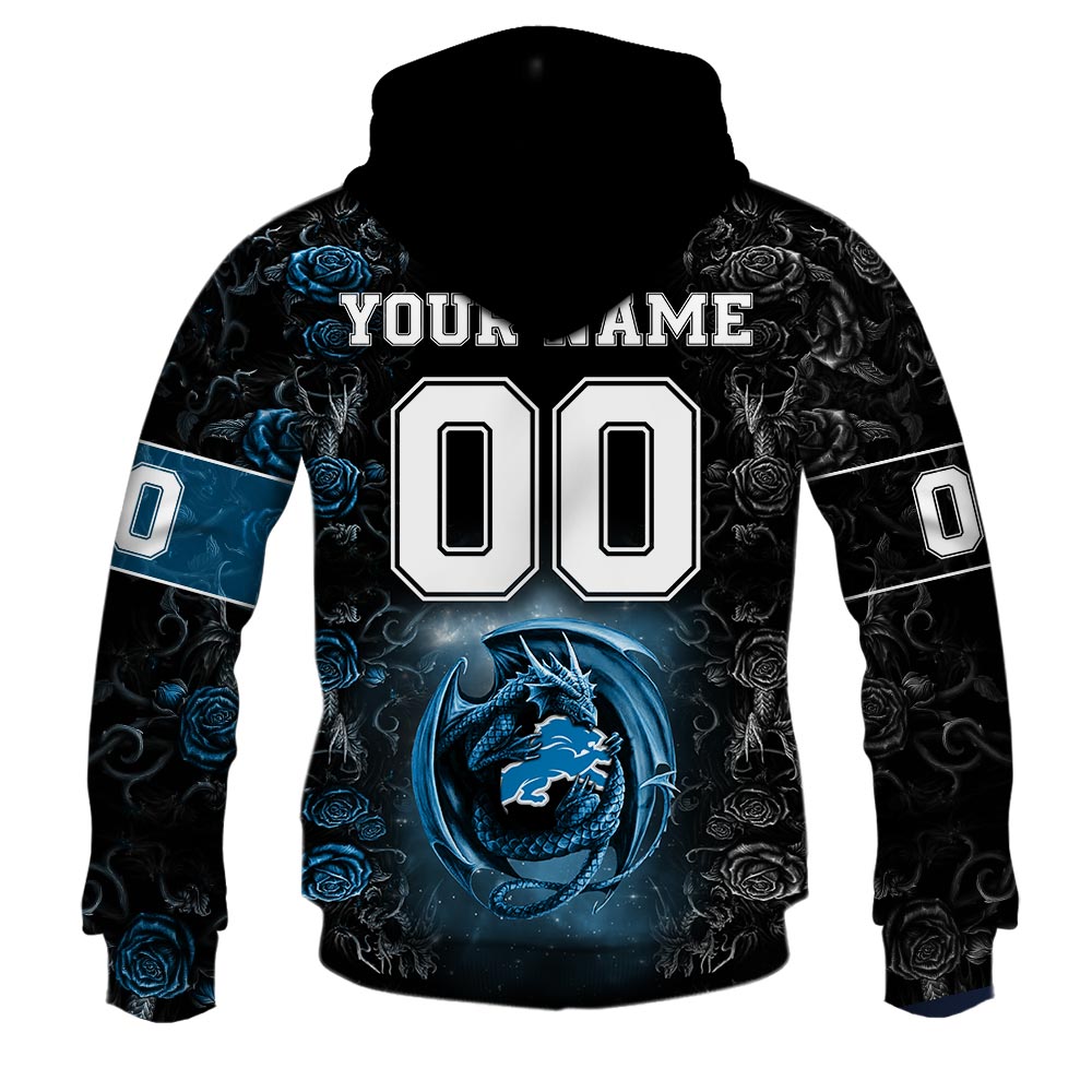 NFL Detroit Lions Custom Name Number Rose Dragon Pullover Hoodie