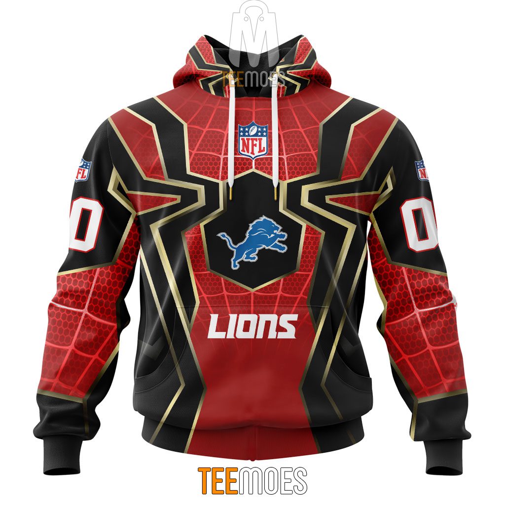 NFL Detroit Lions Custom Name Number Spider Man Pullover Hoodie Product Features Along with its Detroit Lions graphics, this cozy pullover hoodie features super-soft midweight material. Material: 95% polyester + 5% spandex. The fabric is durable and resistant to wrinkles, shrinking and mildew. Hood with drawstrings. Long sleeve. Front pouch pocket. Midweight hoodie suitable for...